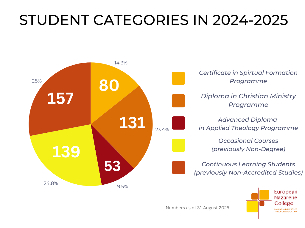 And there is more to celebrate. We rejoice that EuNC has been officially re-accredited by the European Council for Theological Education through 2030 — a milestone affirming our academic quality and shared mission. At the same time, our new admissions this year represent one of the most vibrant intakes in recent memory, with over 120 new learners engaging in accredited programmes and Continuous Learning.